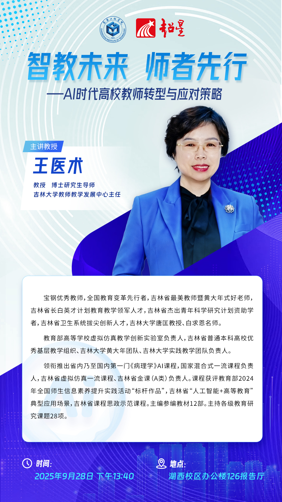 9月24日,教务处组织开展了“人工智能赋能教育教学”教师教学能力提升系列培训第二场。本次培训邀请长春理工大学张肃教授,以“成长活力与学习效果双提升的对话式课堂设计与应用”为题,进行了一场兼具理论深度与实践温度的精彩讲座。